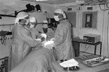 In the theatre we have one theatre table and all the anaesthetic teams.